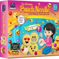 KREEDA Punch Needle Embroidery Kit, DIY Creative Activity, Emoji Embroidery DIY kit, With Wooden Hoop Monk Clothes and Woolen Yarns. Gifts for Girls & Boys Ages 6, 7, 8, 9, 10, 11, 12 (Punch Needle Emoji)