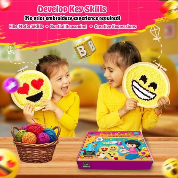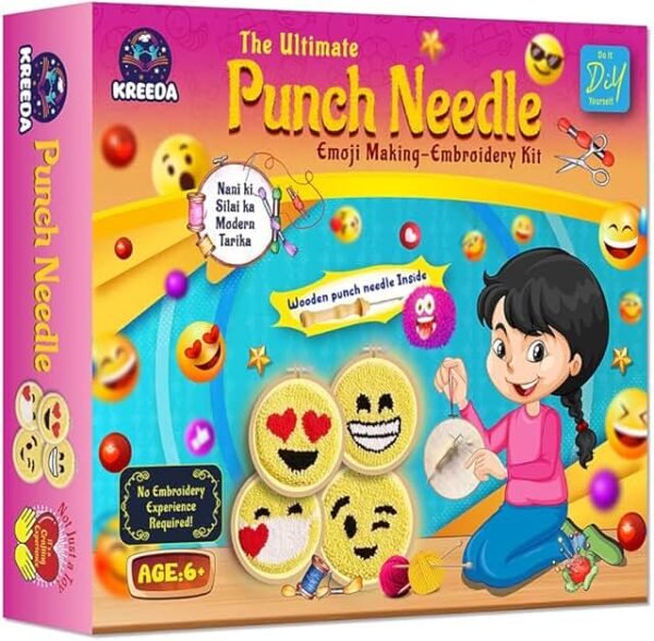 Be the first to review “KREEDA Punch Needle Embroidery Kit, DIY Creative Activity, Emoji Embroidery DIY kit, With Wooden Hoop Monk Clothes and Woolen Yarns. Gifts for Girls & Boys Ages 6, 7, 8, 9, 10, 11, 12 (Punch Needle Emoji)”